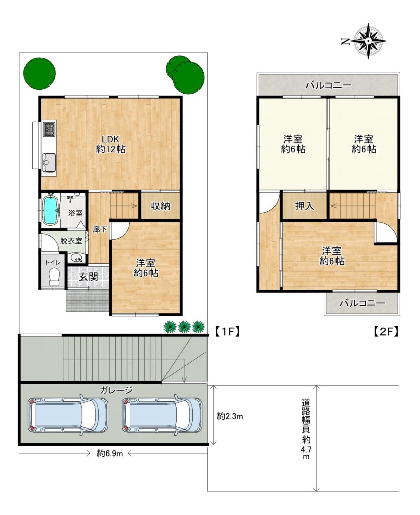 ●所有権●地目/宅地●道路南側(私道)幅員約4.7m(位置指定道路)